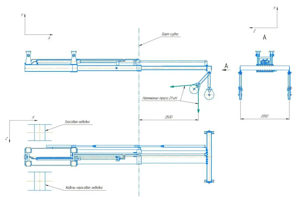 Для комплектации исследовательских судов разработан комплект телескопических кран-балок, предназначенных для вывода и спуска океанологического оборудования за борт с помощью сторонних океанологической кабель-тросовой и гидрографической тросовой электрических лебёдок.