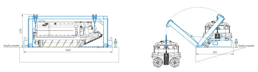 Максимальный спускаемый вес аппаратов – от 24 до 60 т, условия спуска — при одновременном воздействии на изделие крена судна до 20°, дифферента до 10° и качки до 3 баллов по шкале Бофорта.